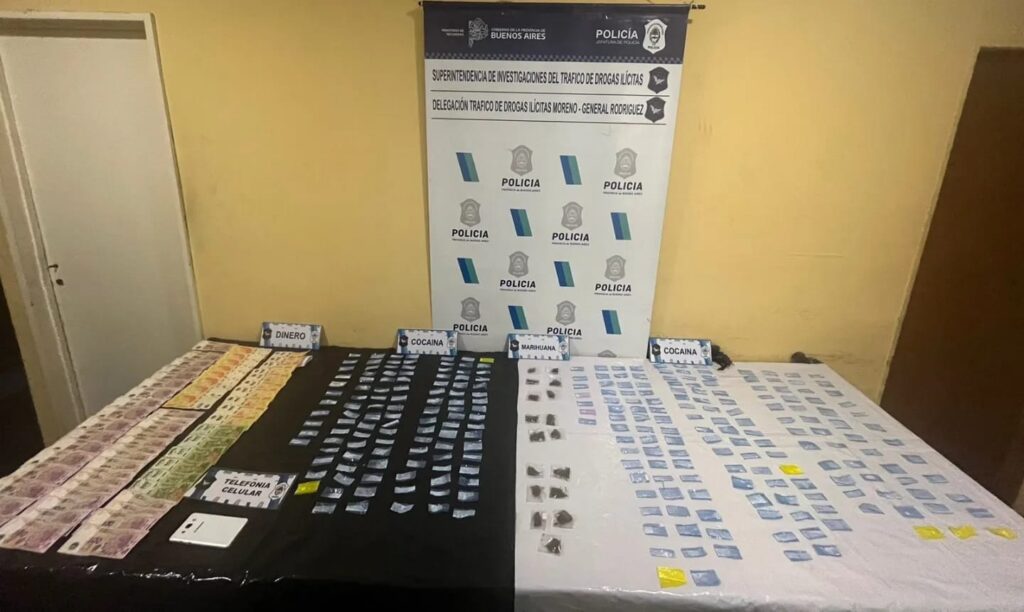 A partir de una investigación de la Superintendencia de Drogas Ilícitas, se realizó un allanamiento en una casa del barrio Mariló de la localidad de Trujui. Se logró incautar marihuana, cocaína y dinero en efectivo. Hasta el momento, hay tres personas detenidas.