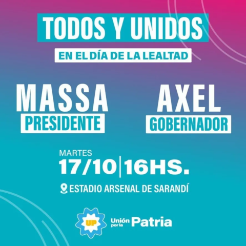 Así llega Kicillof al acto de este martes. Junto a él estará el ministro de Economía de la Nación y candidato presidencial de Unión por la Patria, Sergio Massa. La jornada, que comenzará a las 4 de la tarde, promete darle una inyección de energía al oficialismo para lo que queda de campaña.
