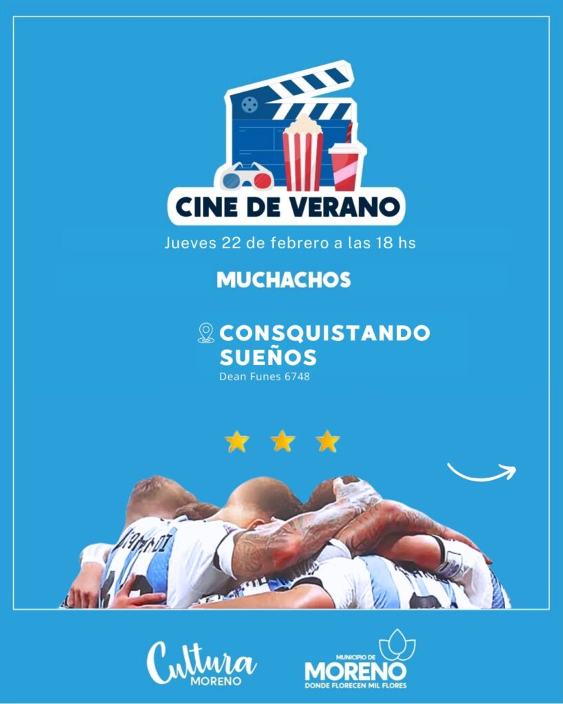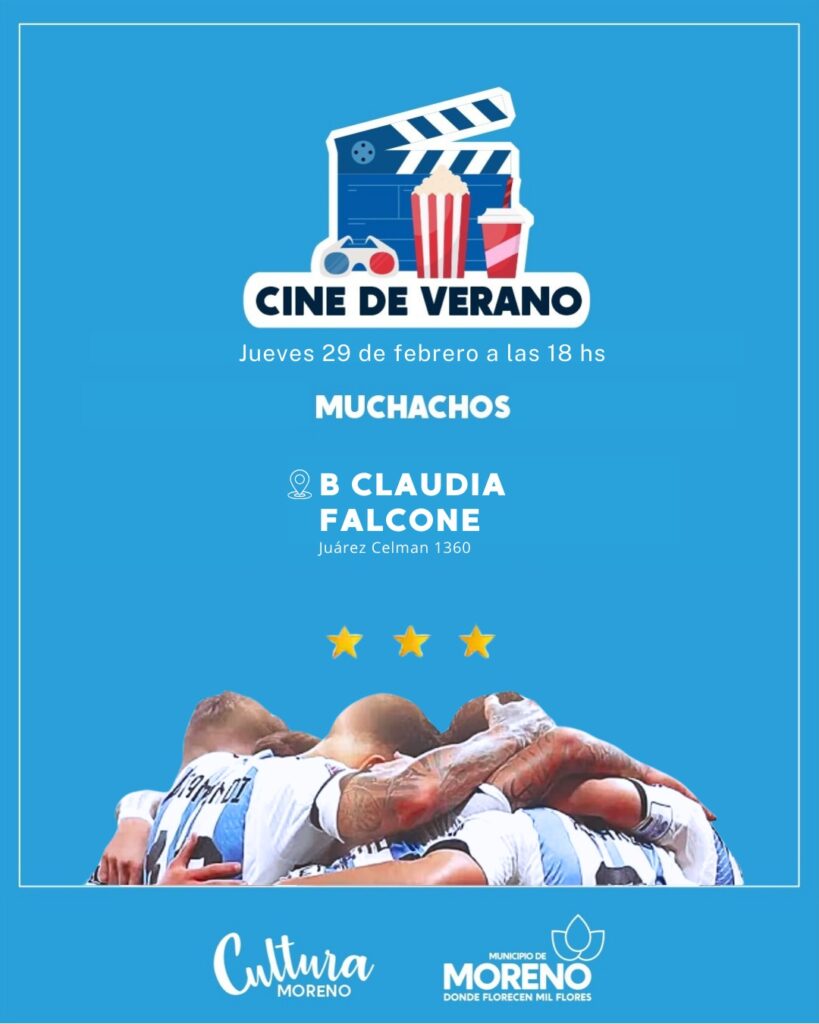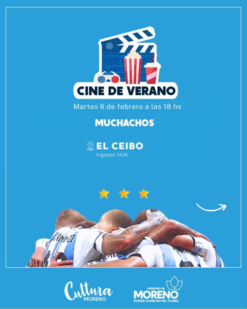 Esta iniciativa, que comenzó en el mes de enero, consta de jornadas de cine libres y gratuitas en diversos espacios y centros culturales del distrito, donde se proyecta la película “Muchachos, la película de la gente”, que recuerda la alegría de las y los argentinos, la locura mundialista y los festejos vividos en la tercera copa del mundo.