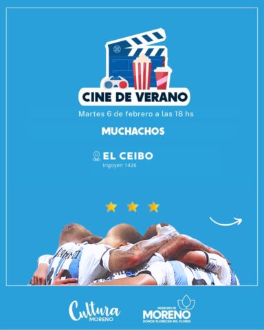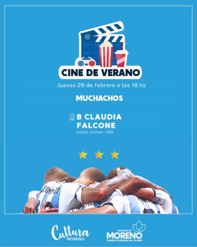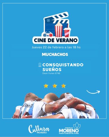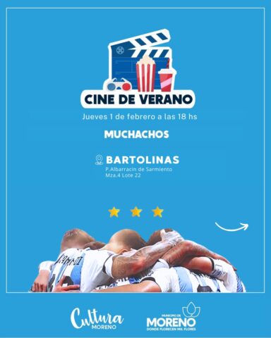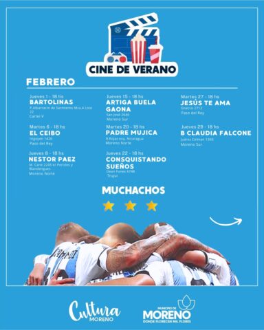 En Moreno, a través de la Secretaría de Educación, Cultura y Deportes local, se continuará con la actividad “Cine de Verano”, durante todo el mes de febrero. Es de carácter libre y gratuita y se desarrollará en diversos espacios y centros culturales.