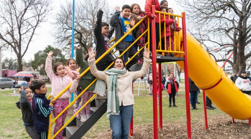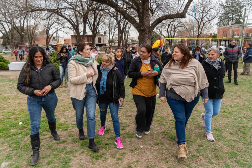 Además, la jefa comunal estuvo en el barrio Jardines 2, donde la recibieron familias, niñas y niños en la Plaza que se está refaccionando. En este espacio se colocaron juegos, luminarias LED, Wi-Fi gratuito y se continúa la mejora.