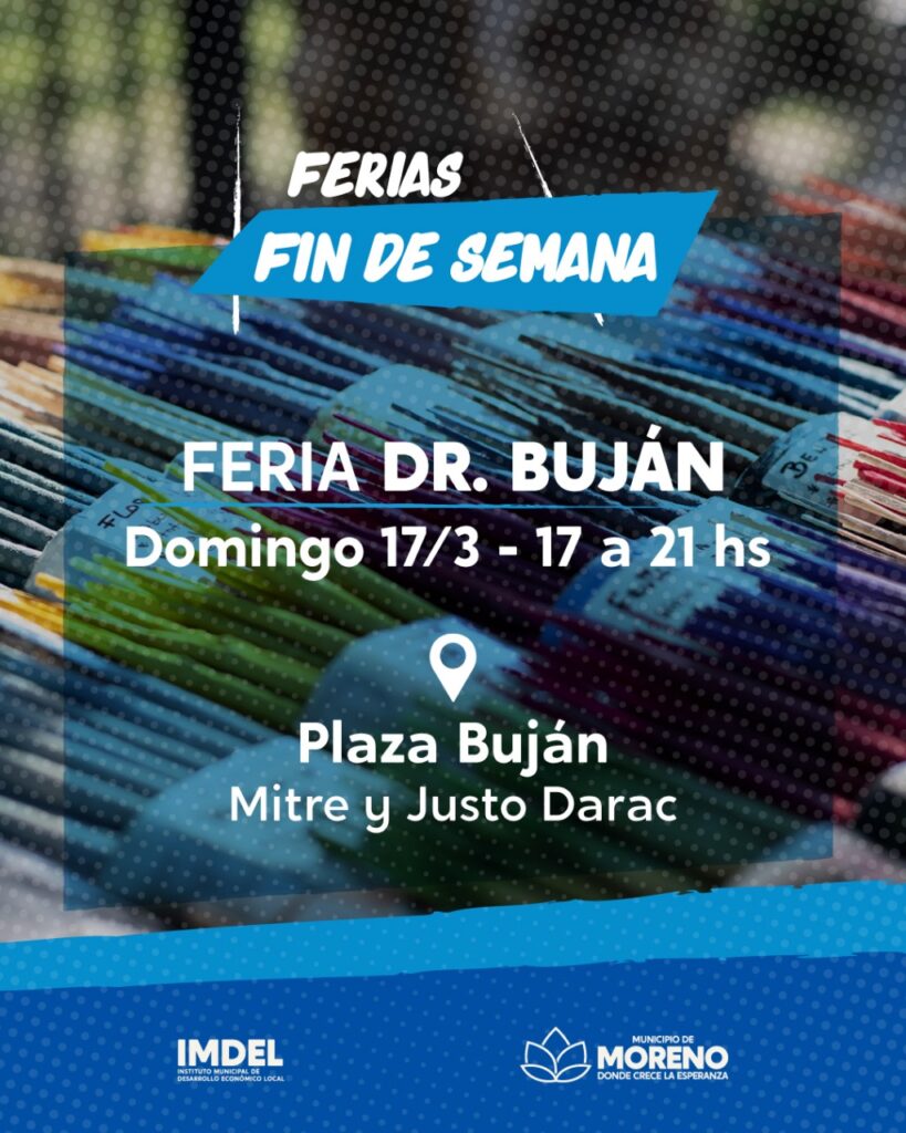 Como cada fin de semana, en Moreno se ofrece una gran variedad de propuestas culturales y turísticas para que la comunidad pueda disfrutar. Entre los eventos estará la obra «Perchejovtres» y el show musical “El Rastrillo. 30 años con la música”, en el Teatro Leopoldo Marechal; las «Ferias de fin de semana”, en la plaza San Martín; “La Plaza Rockea”; “Sábado de Tango en La Reja”; entre otros.