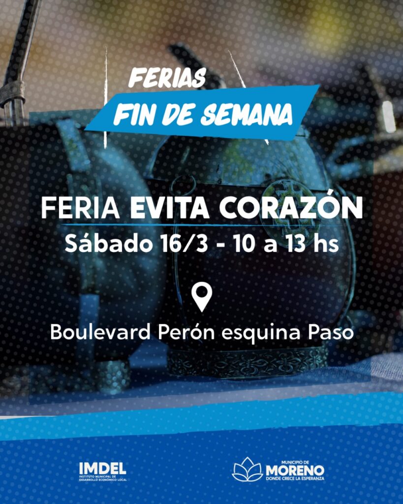 También, el sábado 16, se realizarán las “Ferias de fin de semana” en la plaza San Martín, de 9 a 18 horas; en el Boulevard Evita Corazón, de 10 a 13 horas y en la plaza Buján el domingo de 17 a 21 horas.
