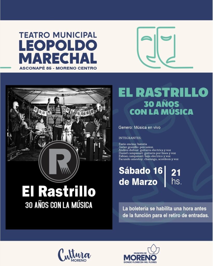A su vez, el sábado, a las 21 horas, se presentará en el Teatro Municipal “Leopoldo Marechal”, el shows musical “El Rastrillo. 30 años con la música”, integrado por Fabio Encina, Javier Granillo, Andrés Dufour, Daniel y Fabian Campanari, y Facundo Amestoy.