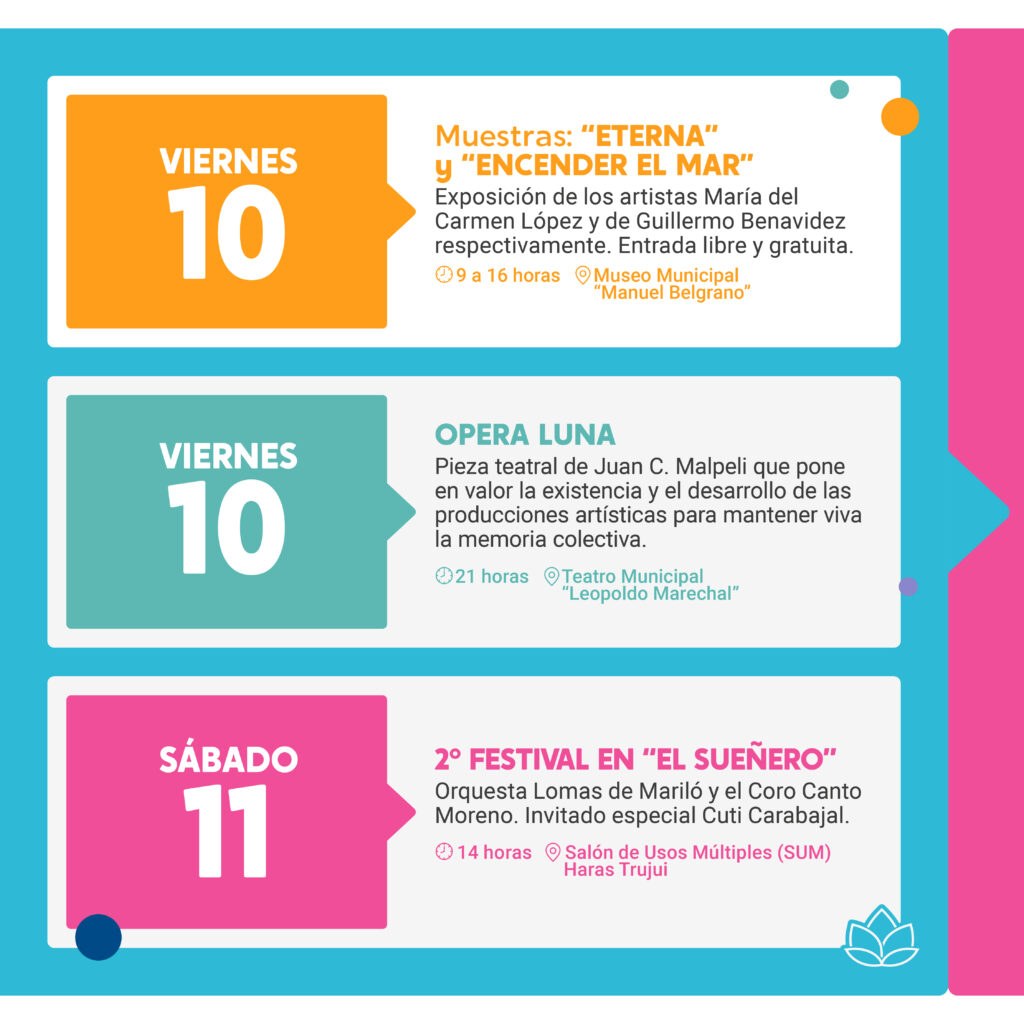 Mañana sábado 11 de mayo, desde las 14 horas, se realizará el 2° Festival en “El Sueñero”, en el Salón de Usos Múltiples (SUM) Haras Trujui, ubicado en Moctezuma y Matienzo, donde se podrá disfrutar de la orquesta Lomas de Mariló y el Coro Canto Moreno. El encuentro contará con la presencia de Cuti Carabajal, habrá radio abierta y se presentarán proyectos de jóvenes y proyecciones en el Centro Comunitario Móvil. Además, el sábado a las 15 horas, se realizará la actividad “Caminata Guiada al Museo Alcorta”. El recorrido comprende desde el Casco Histórico hasta el Museo Amancio Alcorta donde se podrá conocer el extraordinario patrimonio histórico y cultural de Moreno.