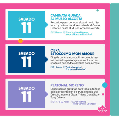 Llega un nuevo fin de semana repleto de propuestas culturales para que las y los vecinos de Moreno, como así también de otras localidades, puedan disfrutar en familia y con amigos. Continúan las exposiciones, obras de teatro, paseos en la Peatonal y las visitas a la Reserva Natural, entre muchas otras actividades.