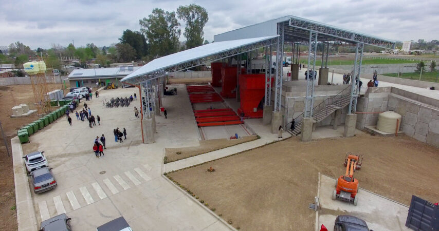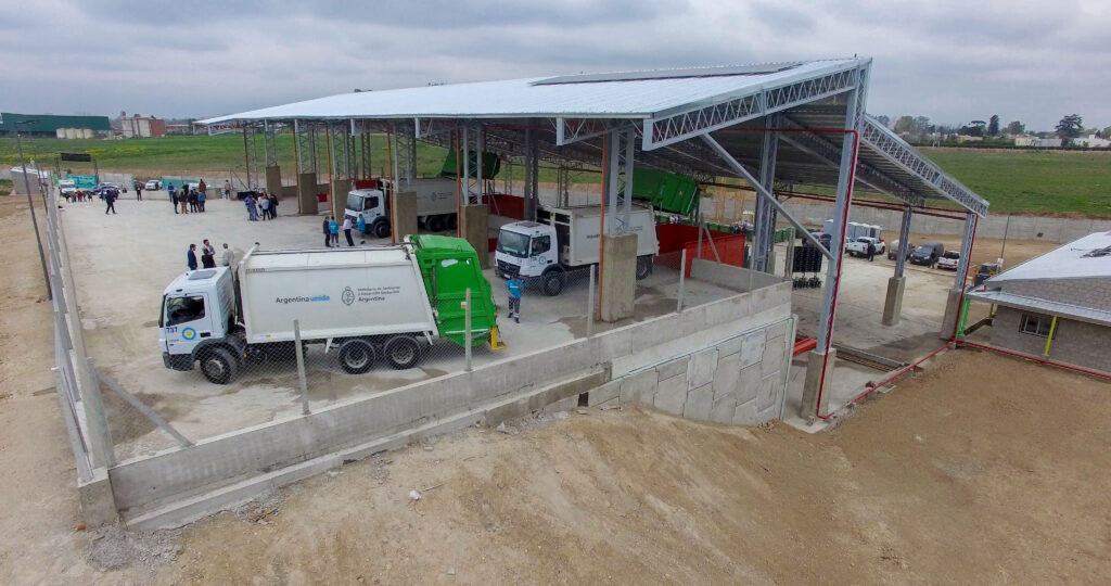 La obra, que demandó en total más de 3.000 millones de pesos de inversión con financiamiento del Banco Interamericano de Desarrollo (BID), contempló la construcción de tres módulos de transferencia; un sector de acceso y de pesaje, una playa de descarga de residuos, balanza de camiones, tratamiento de lixiviados, oficinas administrativas, vestuarios, sanitarios y un salón de usos múltiples con cocina y comedor. Además, se realizaron obras complementarias como la calle de acceso, cortina forestal y cerco perimetral, y se incluyeron componentes de sostenibilidad como paneles y colectores solares, uso de materiales recuperados, iluminación LED y aprovechamiento de agua de lluvia.