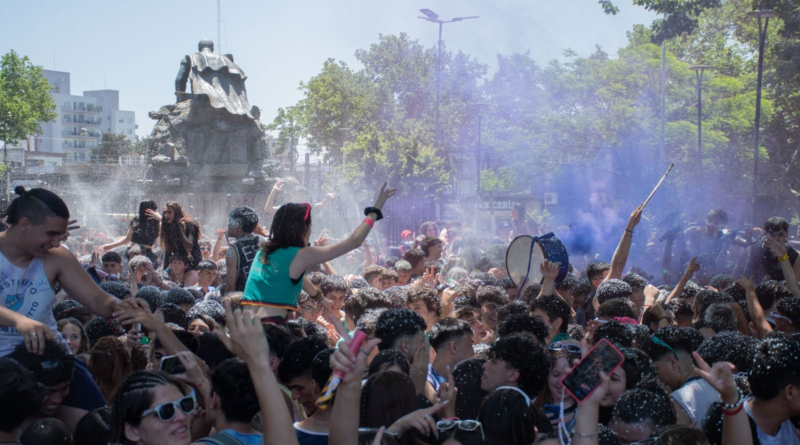 Jóvenes estudiantes celebraron la tradicional batucada en la Plaza San Martín