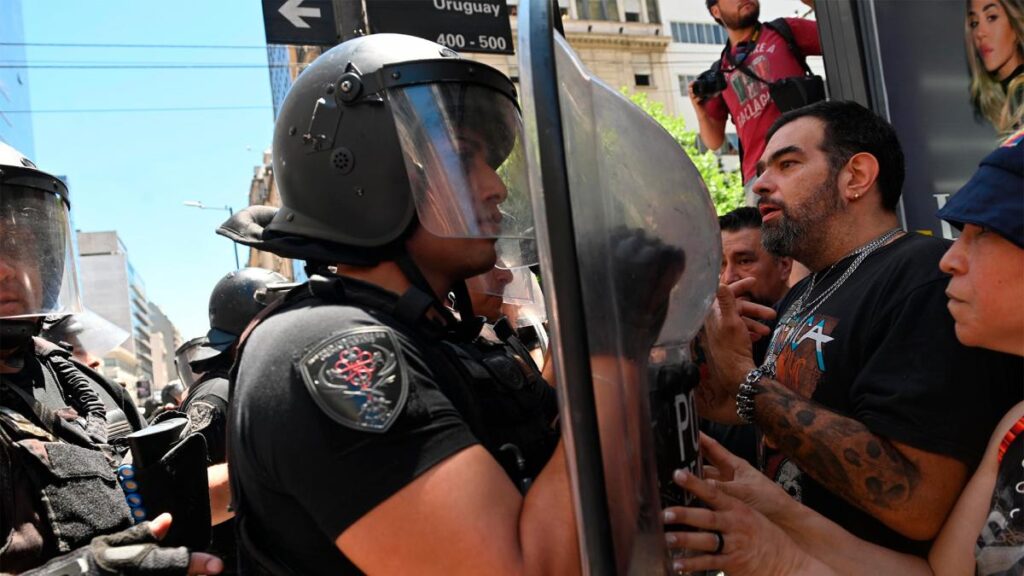 En un clima de tensión contra el Gobierno nacional que asumió hace 18 días, la plaza Lavalle fue el epicentro de una movilización que colmó ese espacio público y las calles aledañas, en medio de un importante operativo de despliegue de las fuerzas de seguridad, en cumplimiento del protocolo de orden público que fue monitoreado desde el Departamento Central de la Policía Federal por la ministra de Seguridad, Patricia Bullrich y su par porteño, Waldo Wolff.