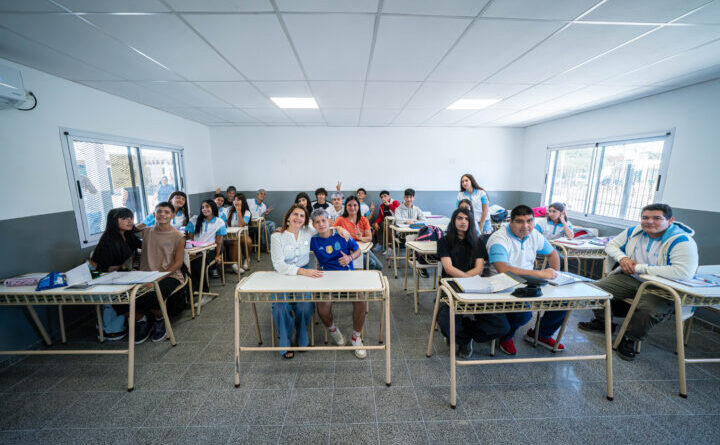 Mariel Fernández, intendenta del Municipio de Moreno, inauguró obras en la Escuela Secundaria N°7, una remodelación integral de la planta baja que incluyó la puesta en valor de siete aulas, la construcción de una nueva cocina y mejoras en distintos espacios de servicio del edificio escolar, trabajos financiados con el Fondo de Financiamiento Educativo. Estuvo acompañada por la directora, docentes, auxiliares, estudiantes y sus familias.