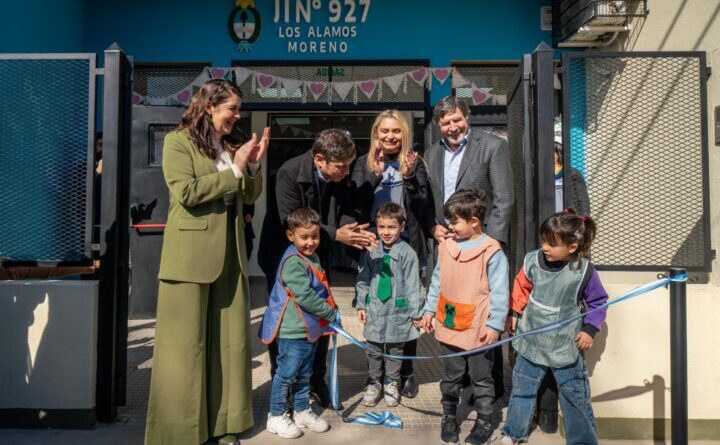 La intendenta de Moreno, Mariel Fernández y el gobernador de la Provincia de Buenos Aires, Axel Kicillof, inauguraron el Jardín N°927 «Los Álamos» del Barrio 2000, ubicado en la localidad de Moreno Norte. Estuvieron acompañados por la comunidad educativa, con quienes recorrieron el nuevo edificio que se realizó con inversión del Fondo de Financiamiento Educativo.