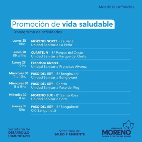 En el “Mes de las Infancias”, se realizarán en todo el distrito de Moreno actividades de acompañamiento y promoción de derechos de las niñeces, con el fin de mejorar la calidad de vida de la comunidad. Esta iniciativa se desarrollará durante todo el mes de agosto en los Centros de Atención Primaria de la Salud (CAPS) e instituciones barriales.