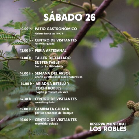 Mientras que a las 11, 14:30 y 16 horas se podrá hacer una recorrida guiada por el Centro de Visitantes y a las 15 horas se realizará la actividad “Caminata guiada por los senderos del bosque”.