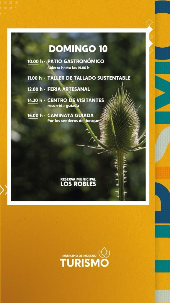Como cada fin de semana, en Moreno se ofrece una gran variedad de propuestas culturales y turísticas para que la comunidad pueda disfrutar. Entre los eventos estará la obra «Ópera Luna»; la «Peatonal Moreno», sobre la Av. Mitre y Rivadavia, con shows gratuitos para toda la familia; el desfile «PluriMoreno» multicultural; la feria de artesanos en el Museo Alcorta y shows de música gratuitos en la Plaza Buján; entre otros. Y como siempre, las actividades recreativas en la Reserva Natural «Los Robles».