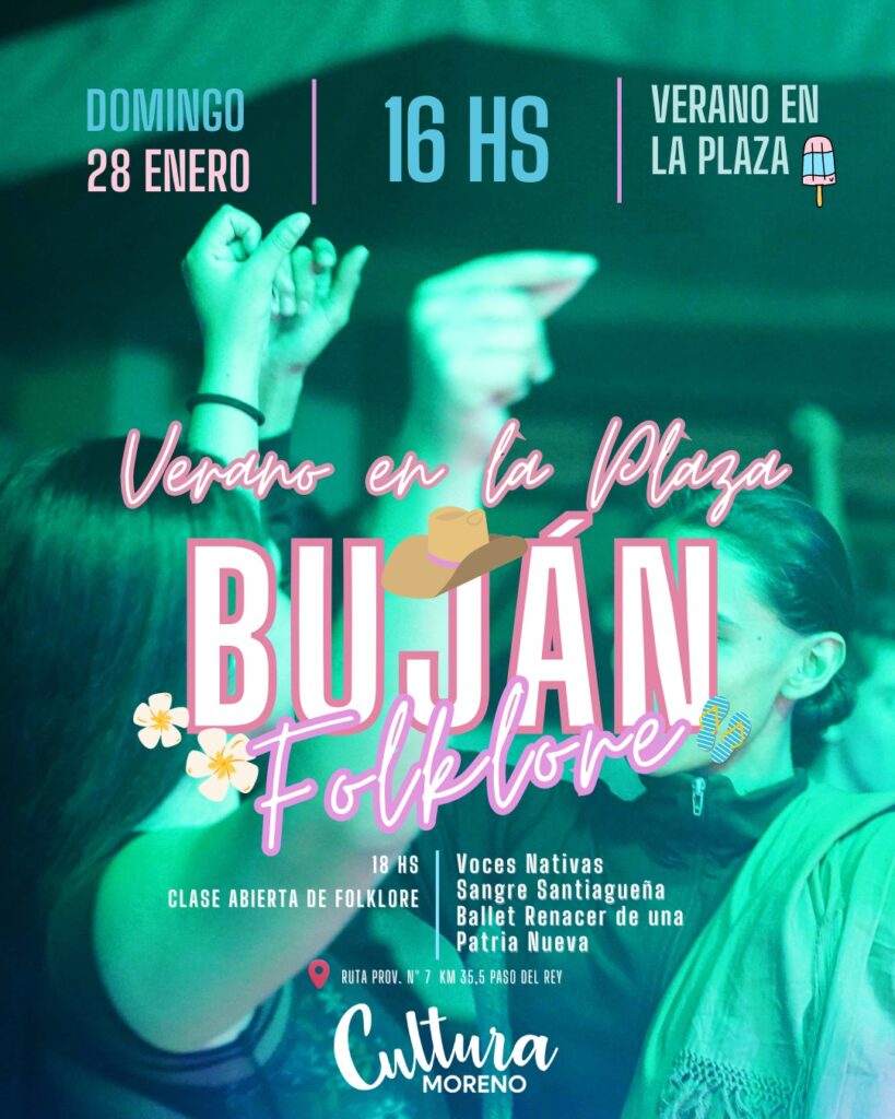 A su vez, todos los sábados y domingos, desde las 16 horas, se desarrollará la actividad “Verano en la plaza Buján”, donde se podrá disfrutar en familia de shows, baile, música y patio de comidas. Durante el sábado 27, a las 18 horas se desarrollará una clase abierta de tango con show de Tango Conurba y se presentarán en vivo los artistas: Dany y su Banda, Euge Uhart, Sin VTV, La Boca Semba y Carlitos Tributo. Mientras que el domingo 28,se llevarán adelante shows en vivo y bailes de folklore. Desde las 18 horas se presentarán los grupos musicales: Voces nativas, Sangre Santiagueña, Ballet renacer de una y Patria Nueva. Las actividades son libres y gratuitas.