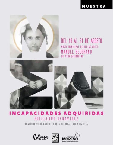 El sábado 19 de agosto, de 9 a 15 horas se realizará la apertura de la muestra “Incapacidades Adquiridas”, en homenaje a Guillermo Benavidez por sus 15 años de carrera en el dibujo y la pintura en el Museo Municipal de Bellas Artes “Manuel Belgrano”, sito en Doctor Vera 249. La misma es de entrada libre y gratuita y se podrá visitar hasta el 31 de agosto, de lunes a viernes de 9 a 15 horas.