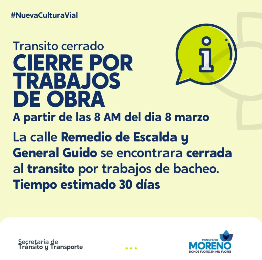 Moreno: se anunciaron interrupciones en la circulación víal por obras