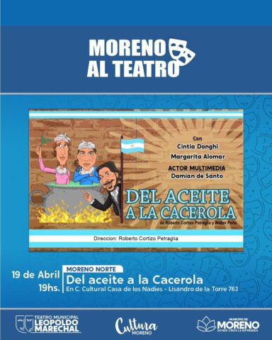 • Viernes 19 de abril, 19 horas, “Del aceite a la cacerola”, en el Centro Cultural “Casa de los nadies”, Lisandro De La Torre 763 – Moreno Norte.