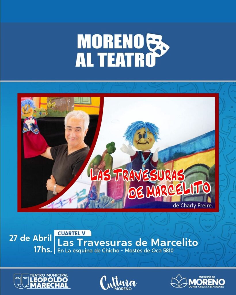• Sábado 27 de abril, 17 horas, “Las travesuras de Marcelito”, en “La esquina de Chicho”, Montes de Oca – Cuartel V.