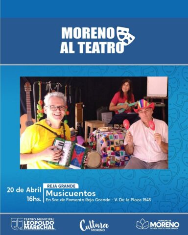 • Sábado 20 de abril, 16 horas, “Musicuentos”, en la Sociedad de Fomento “Reja Grande”, Victorino De La Plaza 1948 – La Reja Grande.