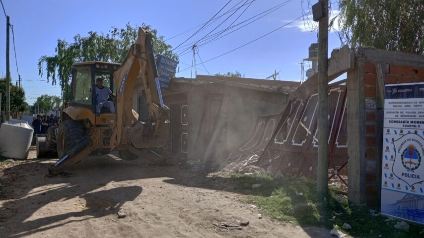 El primer día hábil del año en un operativo conjunto del Municipio de Moreno, el Ministerio de Seguridad de la Provincia y la Estación de Policía de Moreno, se llevó a cabo la destrucción de dos inmuebles utilizados como bunkers por grupos narcos en la localidad de Cuartel V.