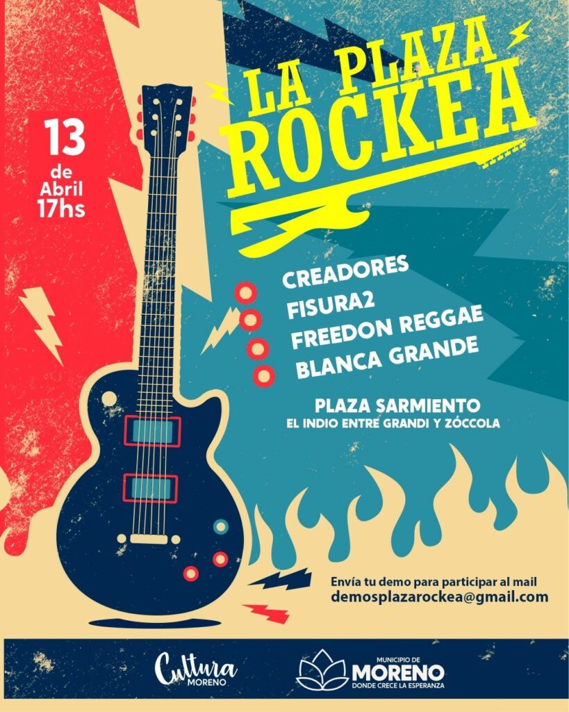 A través de la Secretaria de Cultura, Educación y Deportes, en Moreno se llevará adelante el tradicional encuentro La Plaza Rockea. El evento se realizará este sábado 13 de abril, a partir de las 17 horas en la plaza Sarmiento.