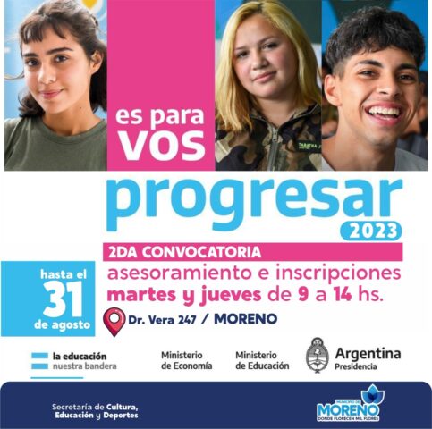 La inscripción a las becas puede realizarse tanto a través de la página becasprogresar.educacion.gob.ar, donde deben completar los respectivos formularios; o en el Punto Progresar de la Subsecretaría de Educación, ubicado en Dr. Vera 247, Moreno Centro, los días martes y jueves de 9 a 14 horas.