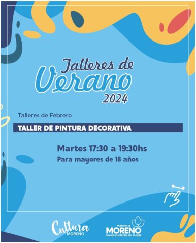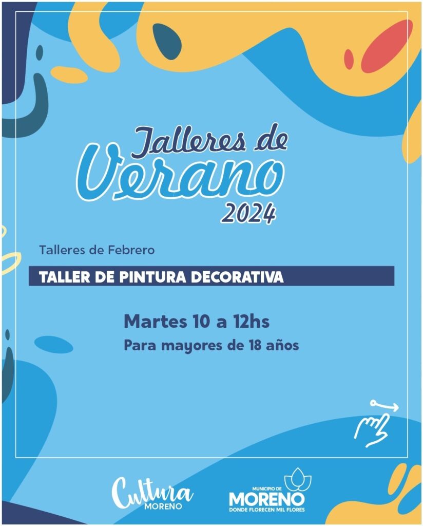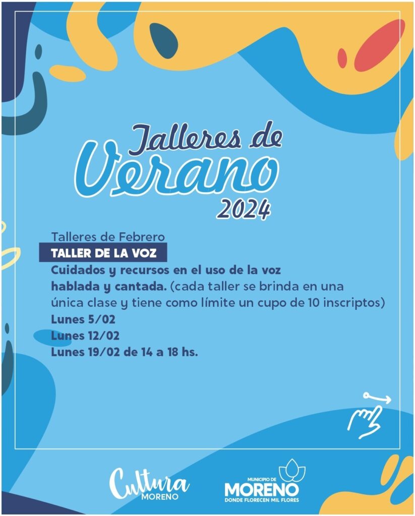 El Municipio de Moreno, a través de la Secretaría de Cultura, Educación y Deportes, continúa con el desarrollo de los “Talleres de Verano 2024”, que se dictan de forma libre y gratuita en la Casa de la Cultura, ubicada en Dr. Vera 247. Allí se encontrarán talleres de la voz, escritura, pintura decorativa y realista, dibujo, pátinas, y poesía.