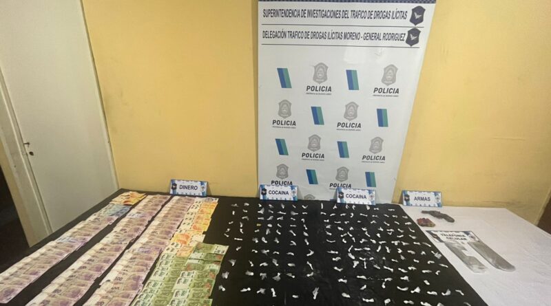 A partir de una investigación de la Superintendencia de Drogas Ilícitas, se realizaron cuatro allanamientos en distintos domicilios del barrio Cuatro Vientos, localidad de Trujui. Se logró incautar 190 envoltorios de cocaína, armas y dinero en efectivo. Hasta el momento, hay tres detenidos.